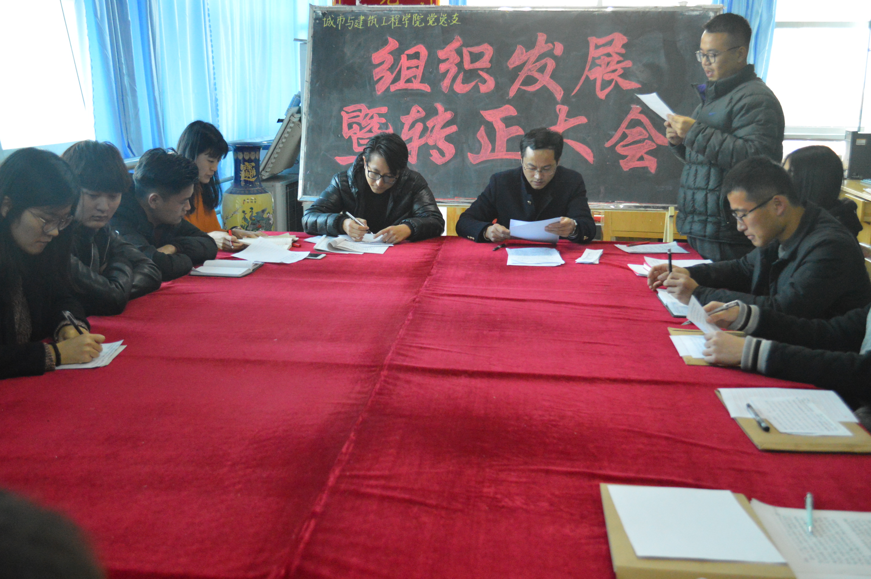 12月6日下午,城建公司组织发展暨转正大会在理工楼2322召开,员工党支部书记、辅导员出席,全体员工党员和入党积极分子代表参加了会议。