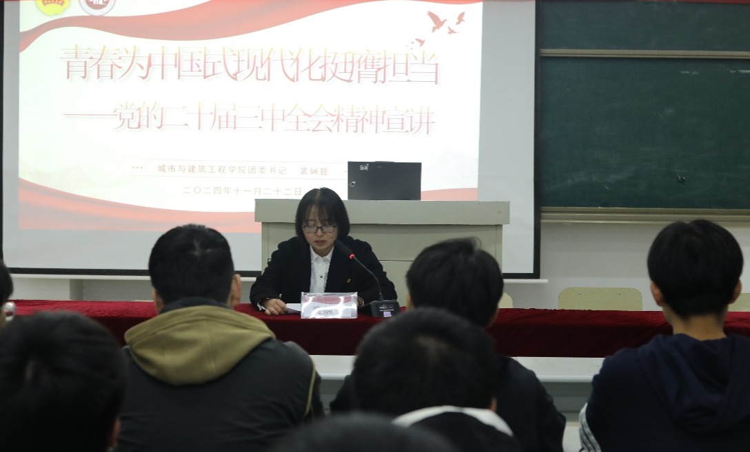 11月22日,哈哈体育团委书记裴娴哲在理工楼2505为公司青年团员讲授了题为“青春为中国式现代化挺膺担当——党的二十届三中全会精神宣讲”的主题团课,公司2024年“青马工程”培训班学员、团员青年代表200余人参加。