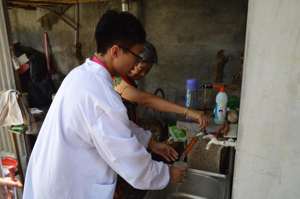 揭牌仪式后,团队队员先后赴峨子山村和付庄村的水生态环境进行了细致的调查,采集了水样,对水质进行了分析。然后使用专业仪器进行实地测量,包括测量地面高差和绘制地形图等,全方位的获取地形数据并研究相应的办法。为了进一步了解情况,团队成员走访村民,询问用水等情况。积极宣传节水、保护水资源等方面的知识,从多方面解决用水困难等问题。同时走访了峨子山村部分留守儿童,带去了一些生活和学习用品。与当地的一些空巢老人进行了积极地交流,深入了解了他们的生活状况,并给予力所能及的帮助。