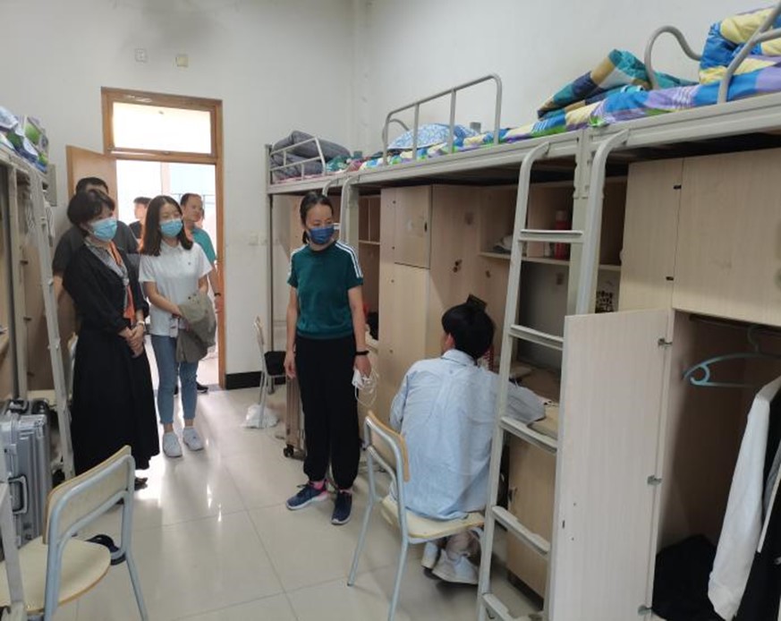 在走访过程中,裘经理主动询问同学们的学习、生活状况,耐心倾听同学们的心声,悉心解答各种疑惑,勉励同学们要善于思考、勤于努力,不断进步。与此同时,邢书记深入了解宿舍设施设备完善情况,排查宿舍安全隐患,并询问同学们特殊时期学习以及生活上的不便之处。走访过程中,亲切的话语,真诚的关爱,让员工寝室中传递出阵阵舒心的笑声。