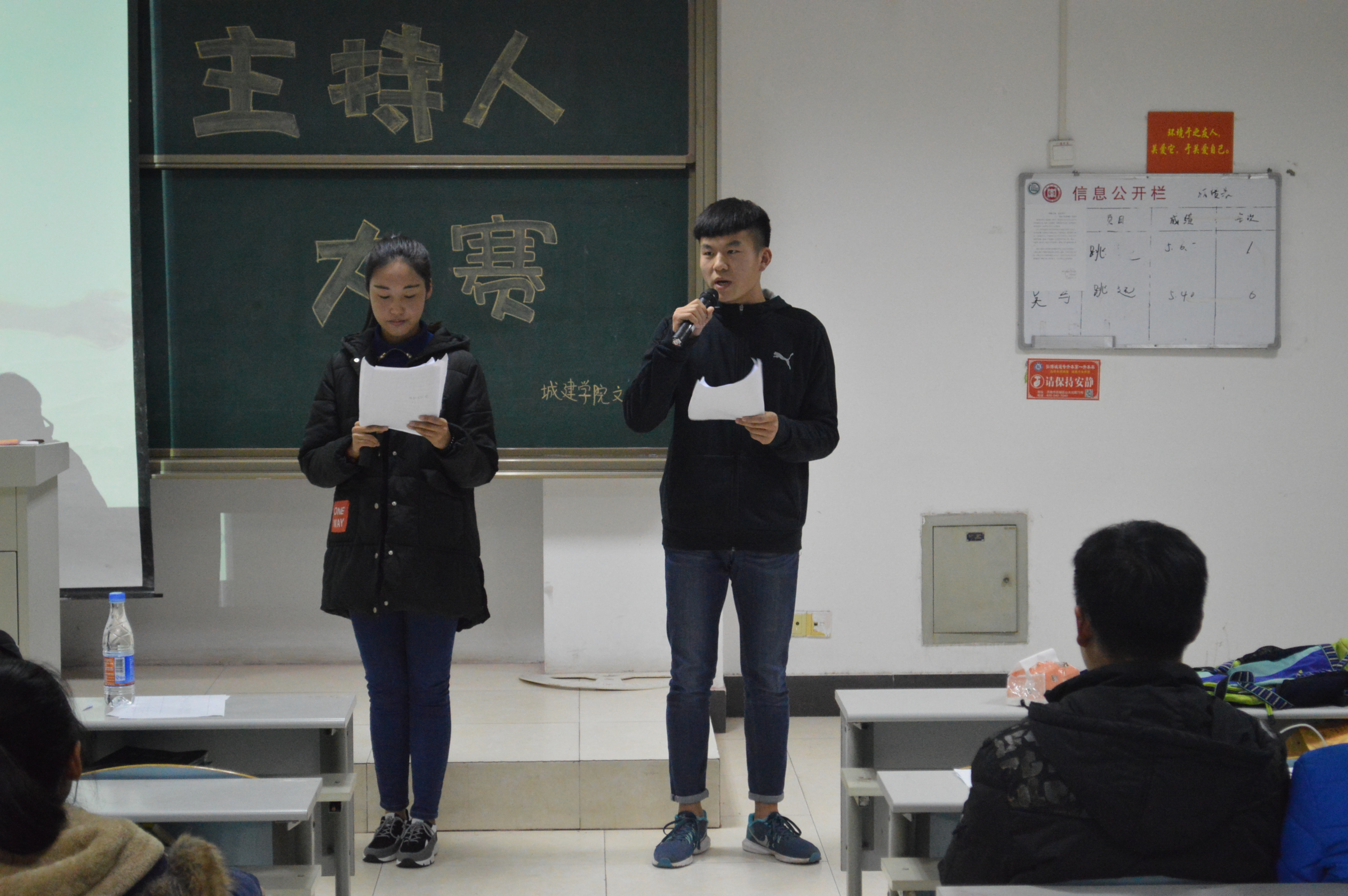 为促进校园文化发展,提高员工的口头表达能力,11月21日晚,哈哈体育主持人大赛在理工楼2505成功举办,2016级全体员工参加此次活动。